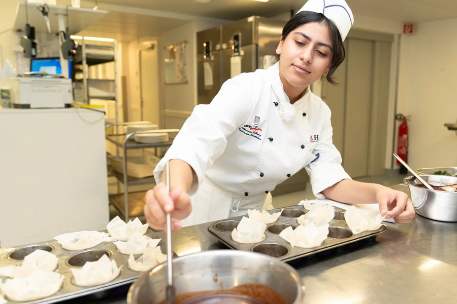 El Diploma Superior en Artes Culinarias de BHMS amplía la comprensión fundamental de los estudiantes sobre los principios culinarios internacionales adquiridos en el nivel de Diploma. Las prácticas destacadas de este segundo año incluyen técnicas avanzadas de cocina fría, formación avanzada en creación y presentación de platos contemporáneos, así como un curso específico de chocolatería. Además, los estudiantes comienzan a desarrollar sus habilidades de gestión a través de asignaturas empresariales básicas, preparándolos para una amplia gama de oportunidades profesionales en el sector culinario.